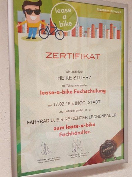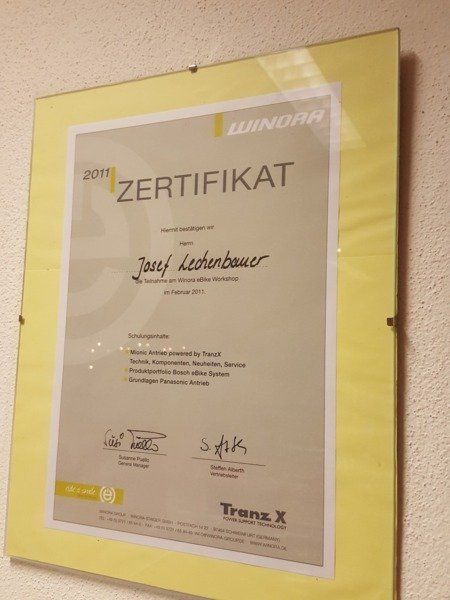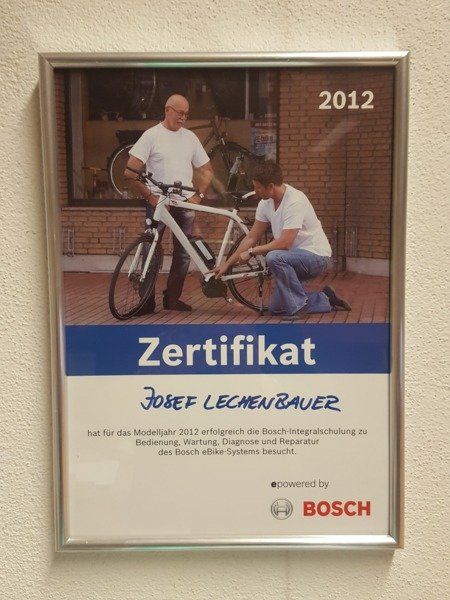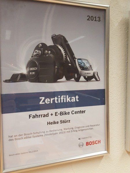 Die E-Bike Fachhändler-Zertifikate belegen unsere umfangreiche Schulung und Kenntnisse im Umgang mit Bosch E-Bike-Systemen.
