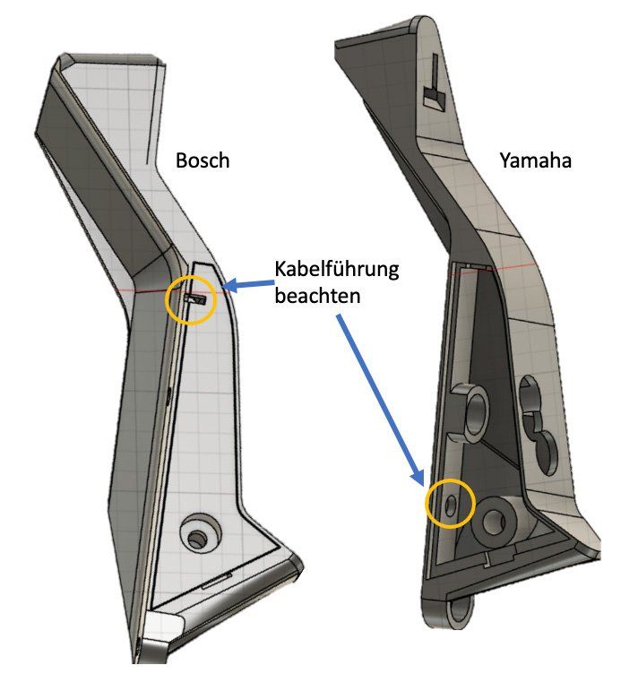 Mit Licht und Adapter oder eben nur den Adapter als Set. Der Lieferumfang ist immer mit allen Kabeln und Schrauben zur Montage. Wichtig ist, dass ihr beachtet, dass es 2-erlei Adapter gibt - einmal für Bosch und einmal für Yamaha.