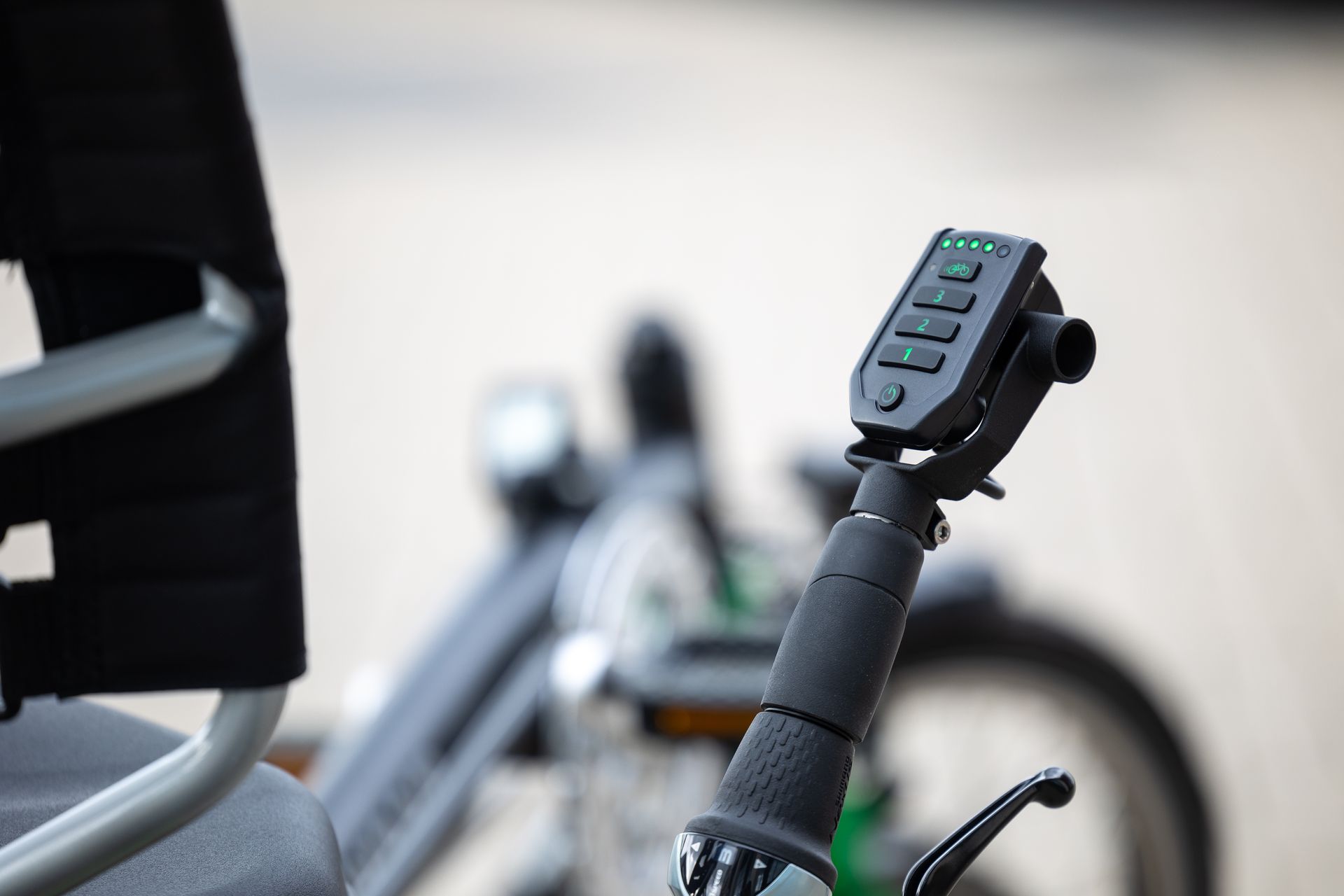 Das OPair ist ein Rollstuhlfahrrad, mit dem Rollstuhlfahrer transportiert werden können. An der Vorderseite des Fahrrads ist ein Sitz für den Rollstuhlfahrer/Passagier angebracht.